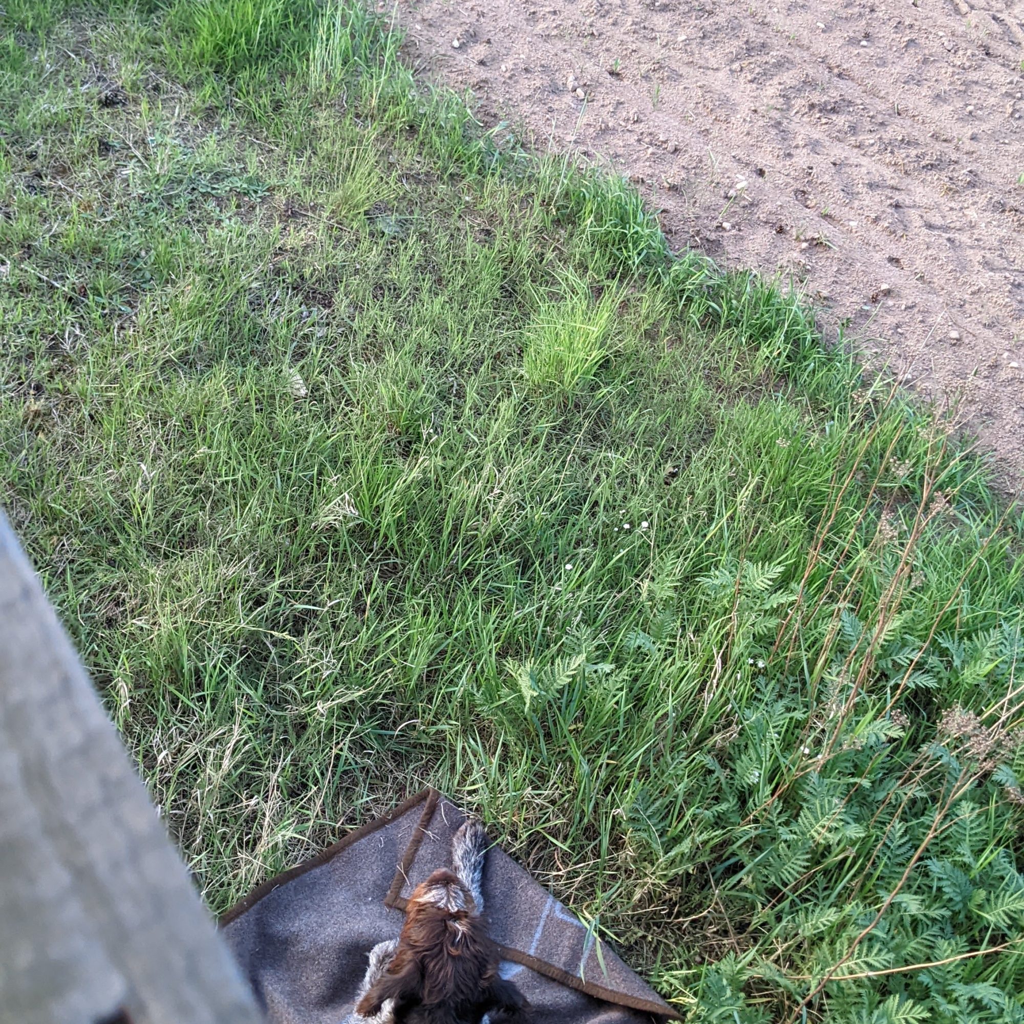 Ich saß auf einer offenen Kanzel und mein treuer Begleiter Rübe durfte es sich unter mir auf seiner bequemen Decke gemütlich machen. Natürlich hatte ich ihn brav angeleint, damit er nicht auf Erkundungstouren geht.