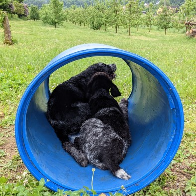 Heute durfte sich Rübe zusammen mit seiner Schwester Ivy in der Tonne austoben nachdem wir in der Welpenstunde weiter an den Grundkommandos gearbeitet haben.